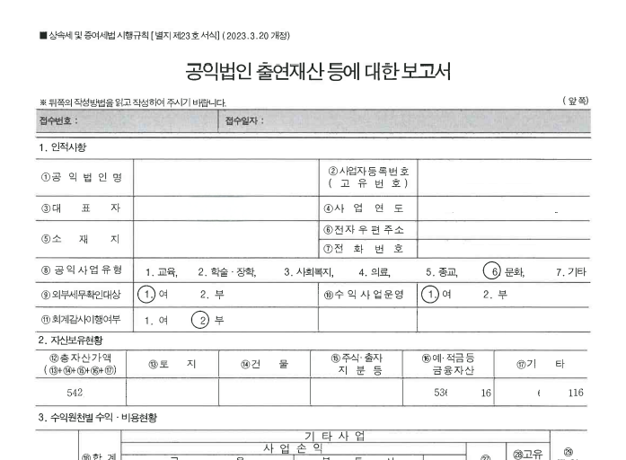 공익법인 출연재산 보고서 첨부 서식 2 _ 회계법인 브릭스